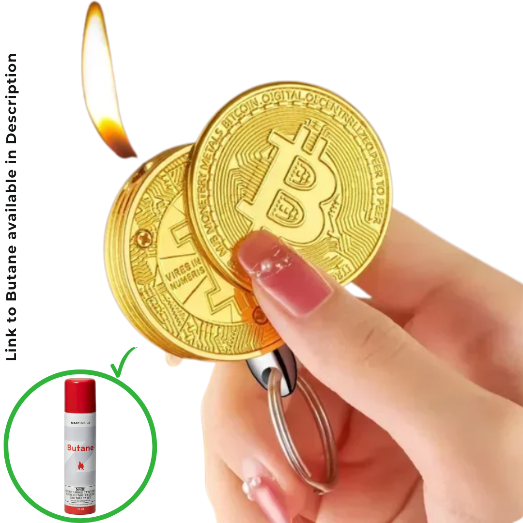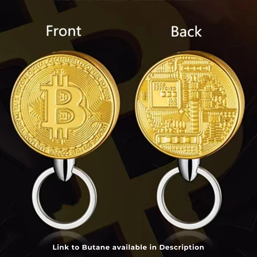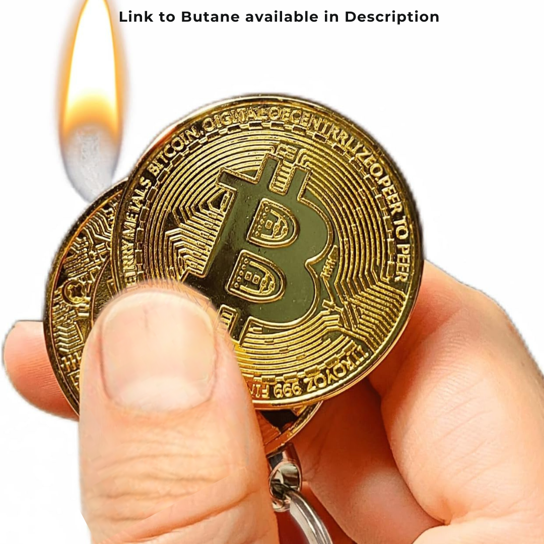 Bitcoin Gold Coin Butane Lighter, Novelty Cryptocurrency Lighter (NO Butane Included)
