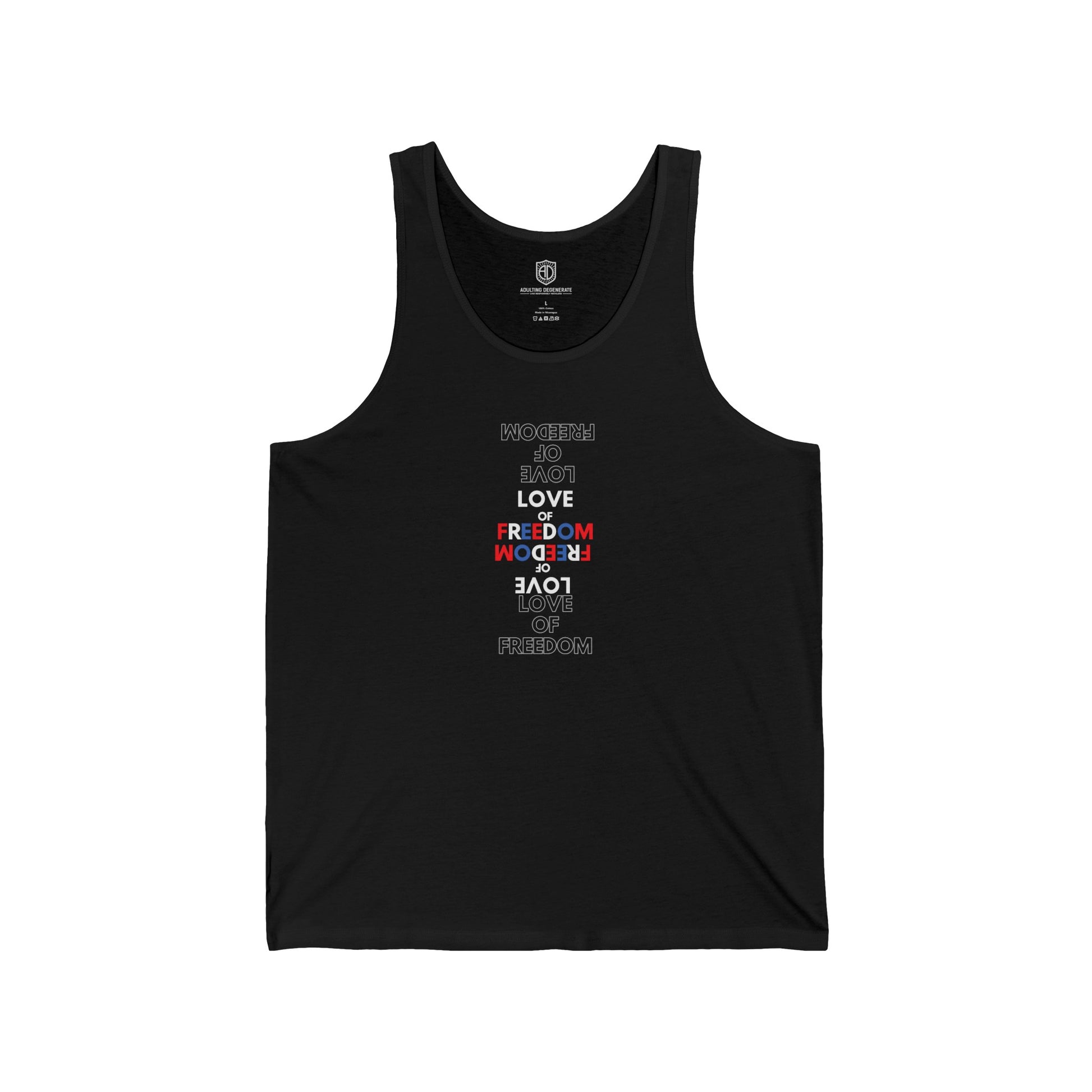 Declare your love for freedom and all things USA with the "Love of Freedom" patriotic tank top - a bold and comfortable way to showcase your American pride.