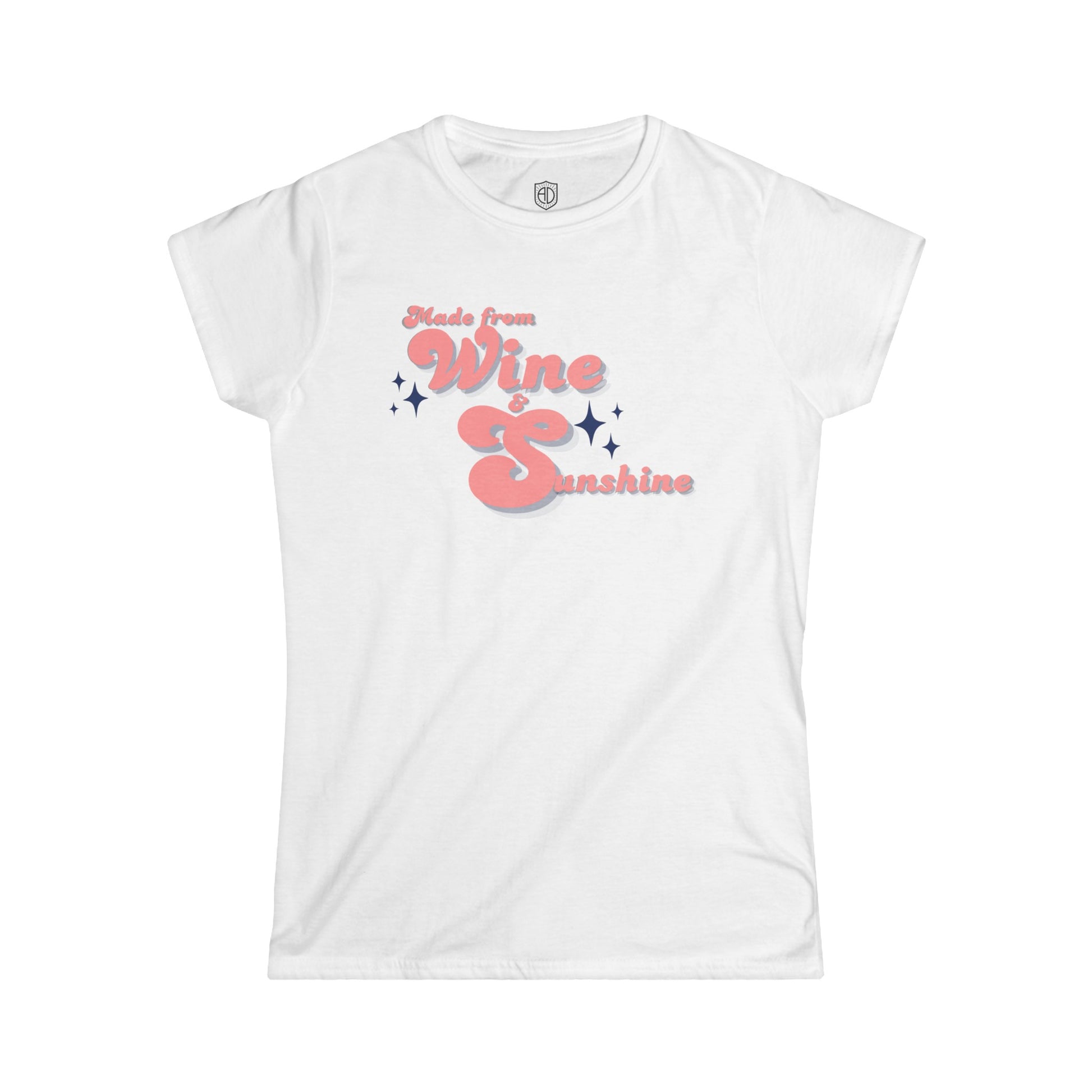 Make a bright statement in this stylish Made from Wine & Sunshine women's tee! This super-soft slim-fit shirt features a fun, cheeky print that's sure to get laughs. The lightweight, breathable fabric keeps you cool and comfy all day long.